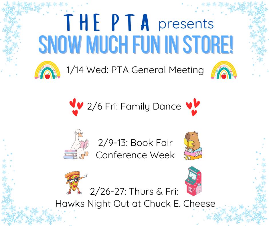 Keep track of upcoming school and/or PTA sponsored events here! Signing up for our newsletter is also a super simple way to stay in the loop. Fill out the form below if you want to get on the list!